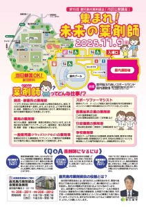 「集まれ!未来の薬剤師」をテーマに、「調剤体験」、「お薬ミニ講座」、「お薬相談」、「大学紹介(薬学部)」など親子連れのイベントを実施し大変好評をいただいております。